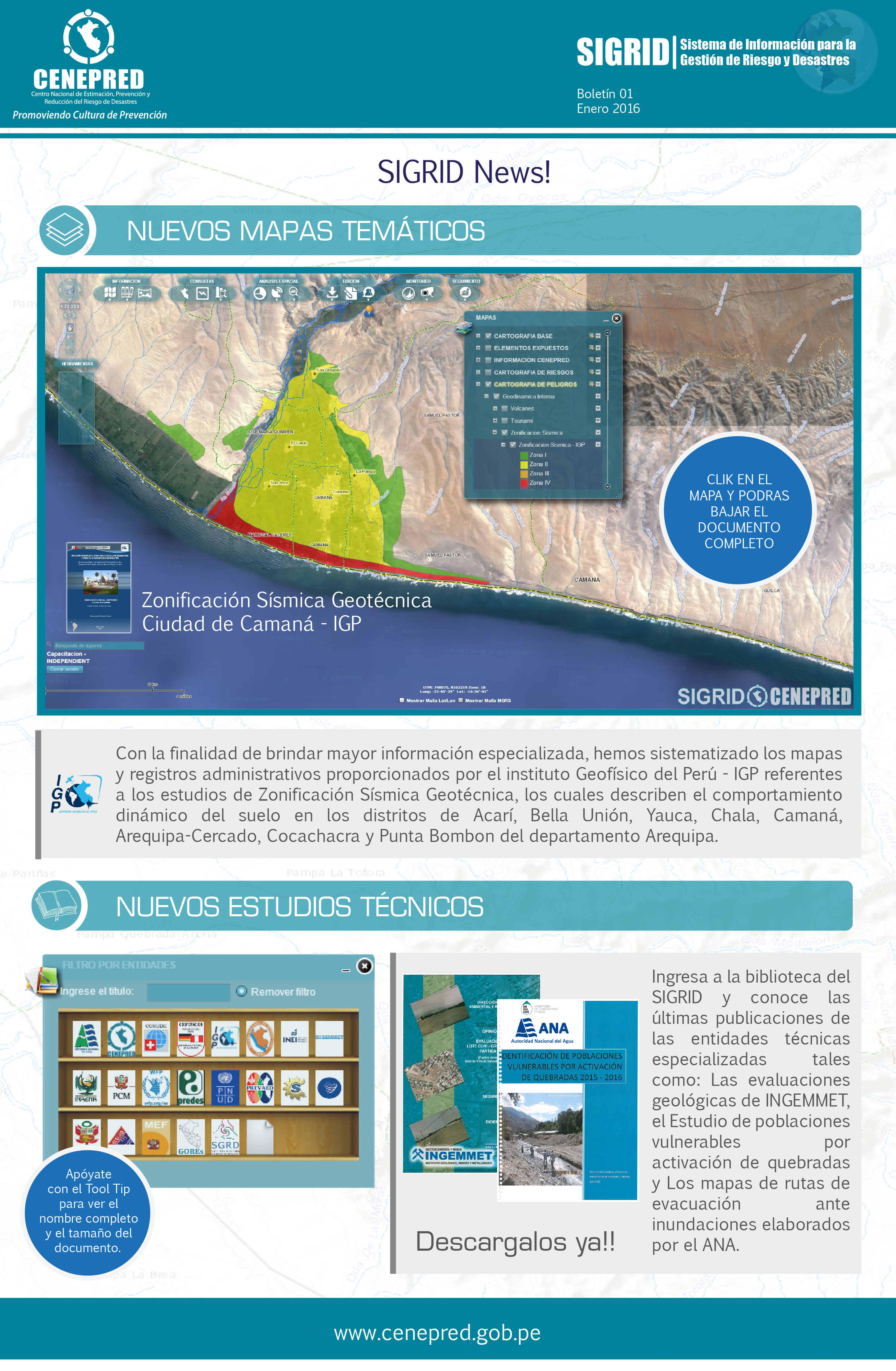 Se muestra los mapas temáticos, estudios y funcionalidades nuevas del Sistema de Información para la Gestión del Riesgo de Desastres – SIGRID.