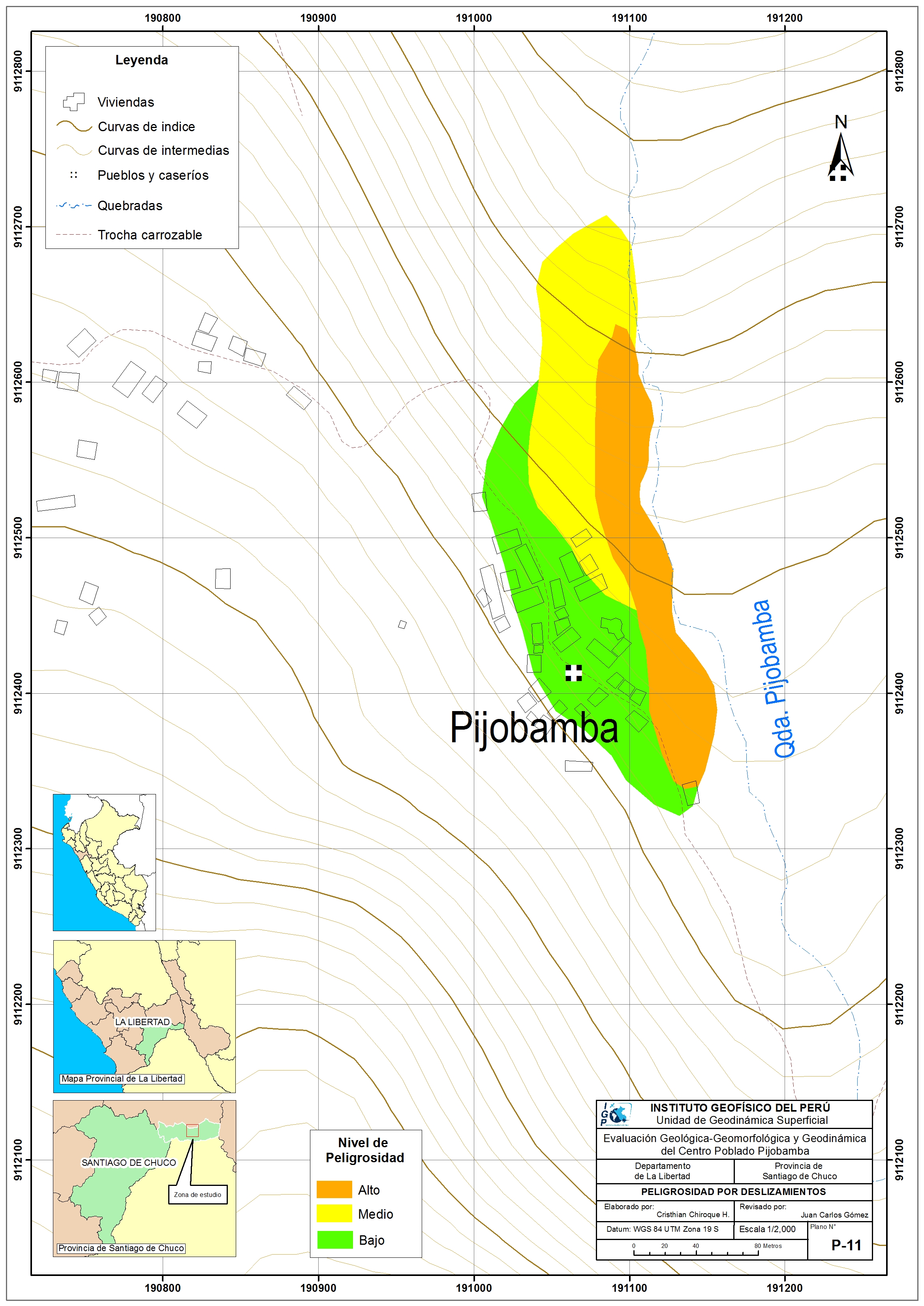 Mapa peligrosidad por deslizamientos del centro poblado Pijobamba, La Libertad