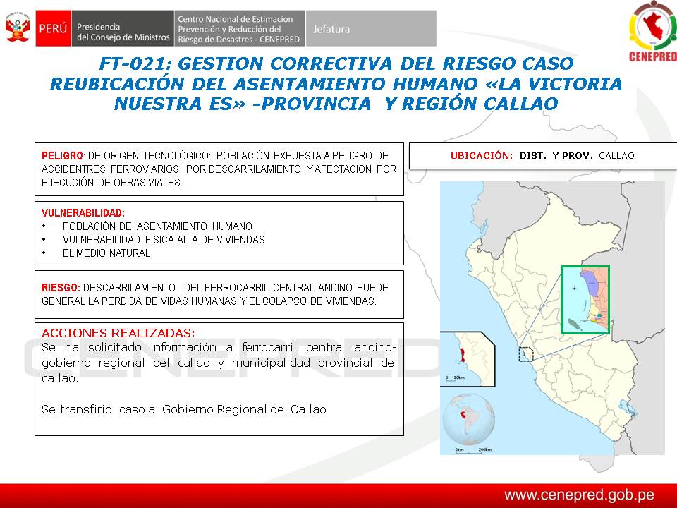 Caso reubicación del asentamiento humano La Victoria Nuestra Es, provincia y región Callao