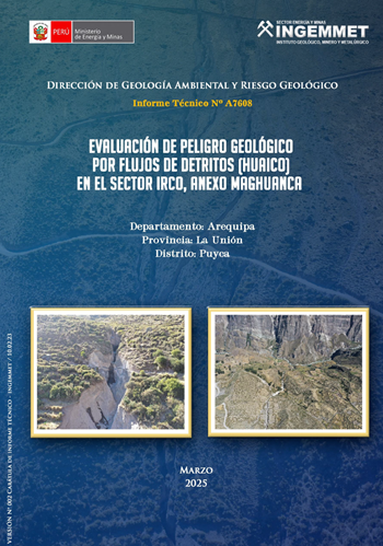Informe Técnico N° A7608 Evaluación de peligro geológico por flujos de detritos (huaico) en el sector Irco, anexo Maghuanca, distrito de Puyca, provincia de La Unión, departamento de Arequipa