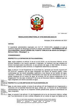 Resolución Directoral N° 0703-2025-ANA-AAA.CO: Determinación de la Faja Marginal aguas arriba del puente Tumilaca en el distrito de Samegua, provincia de Mariscal Nieto, región Moquegua