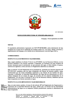 Resolución Directoral N° 0726-2025-ANA-AAA.CO: Delimitación de la Faja Marginal del cauce de la quebrada sin nombre sector Av. los Incas, en el distrito de Arequipa, provincia de Arequipa, región Arequipa