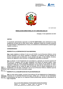 Resolución Directoral N° 0711-2025-ANA-AAA.CO: Delimitación de la Faja Marginal con huella máxima de un tramo del río Cinto sector Caoña-Matogroso, en los distritos de Ilabaya y Locumba, provincia de Jorge Basadre, región Tacna