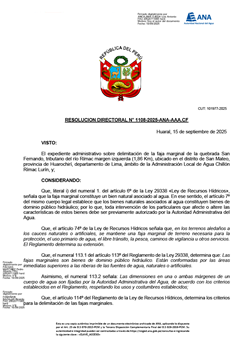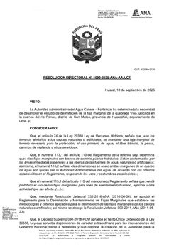 Resolución Directoral N° 1156-2025-ANA-AAA.CF: Delimitación de faja marginal de la quebrada Santo Domingo, distrito de Lurigancho, provincia y departamento de Lima