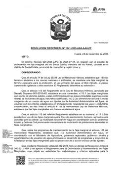 La presente resolución aprueba la delimitación de la faja marginal del río Santa Eulalia, en ambas márgenes del cauce principal una longitud de 5.37 km, cuenta con un total de cuarenta y nueve (49) hitos georreferenciados y validados en coordenadas UTM WGS 84-18S, de los cuales 30 hitos corresponden a la margen derecha y 19 hitos corresponden a la margen izquierda.