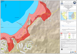 La carta presenta la zona inundable ante tsunami generado por un evento sísmico de 8.5Mw y 9.0 Mw en el distrito y provincia Callao, departamento Callao.