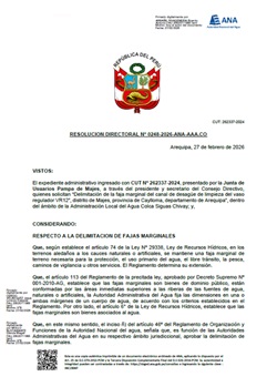 Resolución Directoral N° 0248-2026-ANA-AAA.CO: Delimitación de faja marginal del canal de desagüe de limpieza del vaso regulador VR12 en el distrito Majes, provincia Caylloma, departamento de Arequipa,