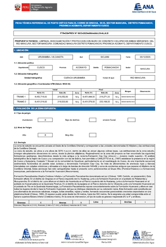 Mediante el Oficio N° 1274-2025-ANA-J, la Autoridad Nacional del Agua remite cincuenta (50) fichas técnicas referenciales de prevención de puntos críticos 2025 de los departamentos de Piura, Lima, Cusco y Puno; como propuestas de intervenciones de prevención.