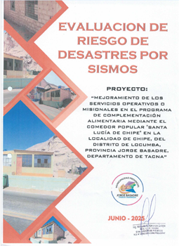 El presente informe tiene como objetivo Identificar y determinar los niveles de riesgo por sismos en el ámbito del proyecto: "Mejoramiento de los servicios operativos o misionales en el programa de complementación alimentaria mediante el comedor popular "Santa Lucía de Chipe" en la localidad de Chipe, del distrito de Locumba, provincia Jorge Basadre, departamento de Tacna".