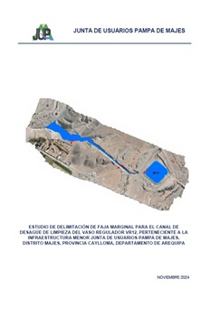 El presente estudio tiene como objetivo proponer la delimitación de la faja marginal del canal de desagüe y limpieza del Vaso Regulador VR12, perteneciente a la infraestructura de la Comisión de Usuarios del Subsector Hidráulico 1R-VR12-E7, de la Junta de Usuarios Pampa de Majes.