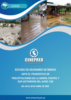 Describe las condiciones probables de daños y pérdidas que puede sufrir la población y sus medios de vida ante la ocurrencia de precipitaciones en la sierra centro y sur (Extensión del aviso 129) del 08 al 09 de abril de 2026 (Aviso 132).