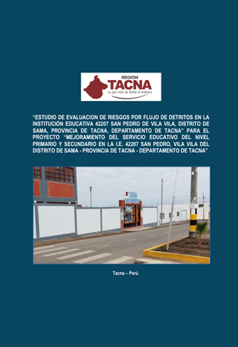 El objetivo del presente estudio es determinar el nivel de riesgo originado por flujo de detritos del proyecto denominado “MEJORAMIENTO DEL SERVICIO EDUCATIVO DEL NIVEL PRIMARIO Y SECUNDARIO EN LA I.E. 42207 SAN PEDRO, VILA VILA DEL DISTRITO DE SAMA - PROVINCIA DE TACNA - DEPARTAMENTO DE TACNA