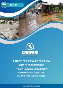 Describe las condiciones probables de daños y pérdidas que puede sufrir la población y sus medios de vida ante la ocurrencia de precipitaciones en la sierra del 14 al 16 de febrero de 2026 (Aviso 046).
