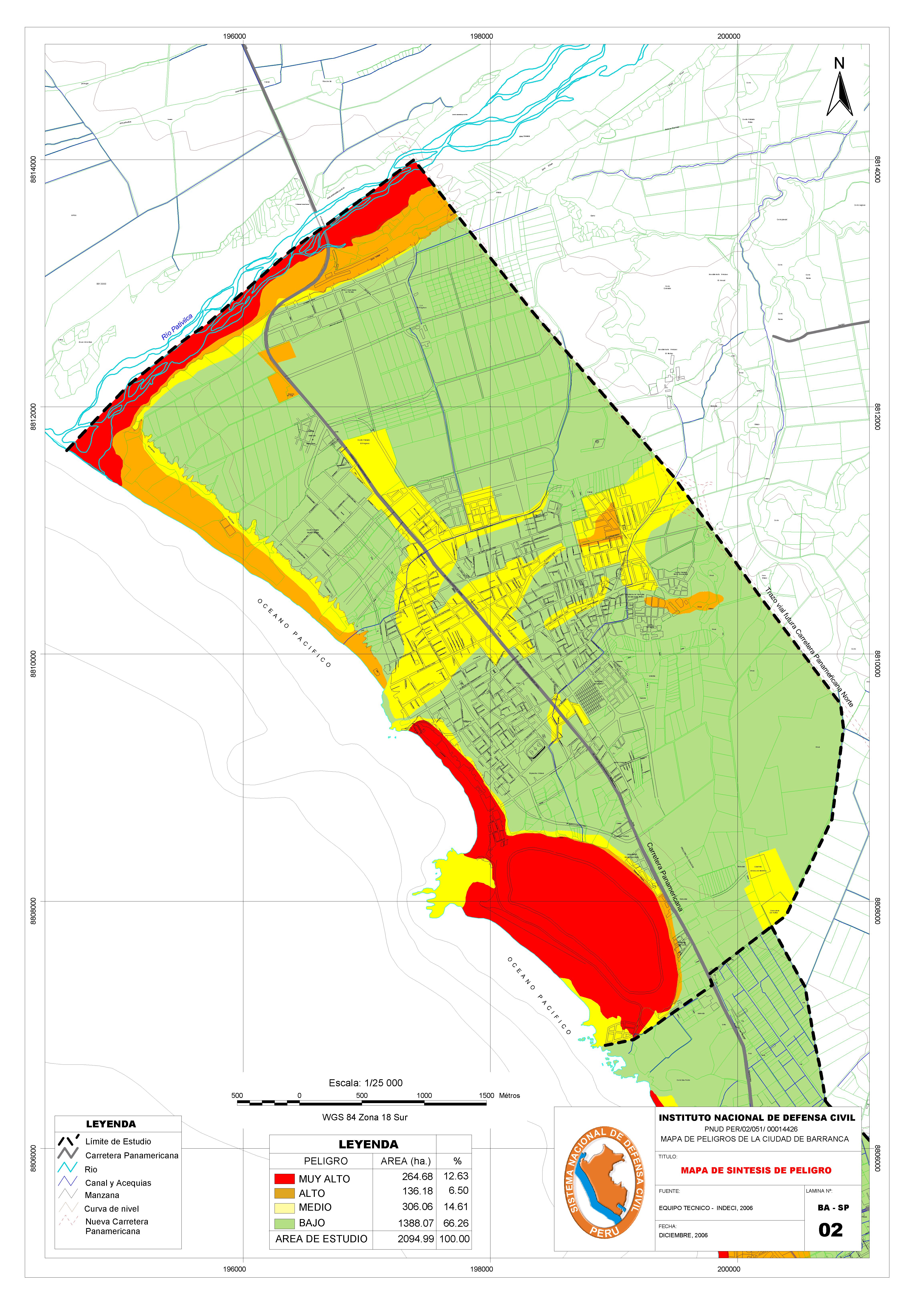 Mapa de síntesis de peligros de la ciudad de Barranca, Lima