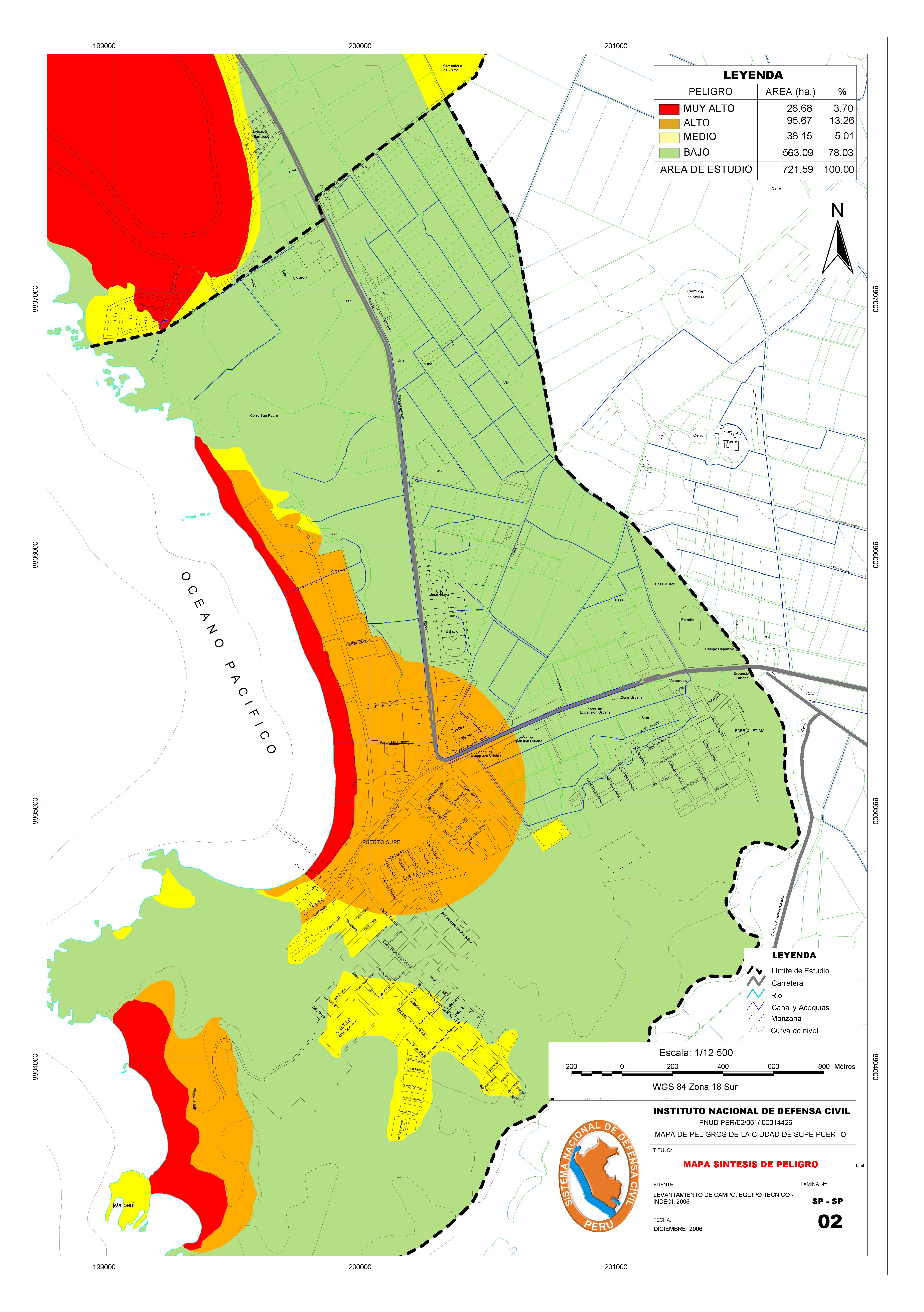 Mapa de síntesis de peligro de la ciudad de Supe Puerto