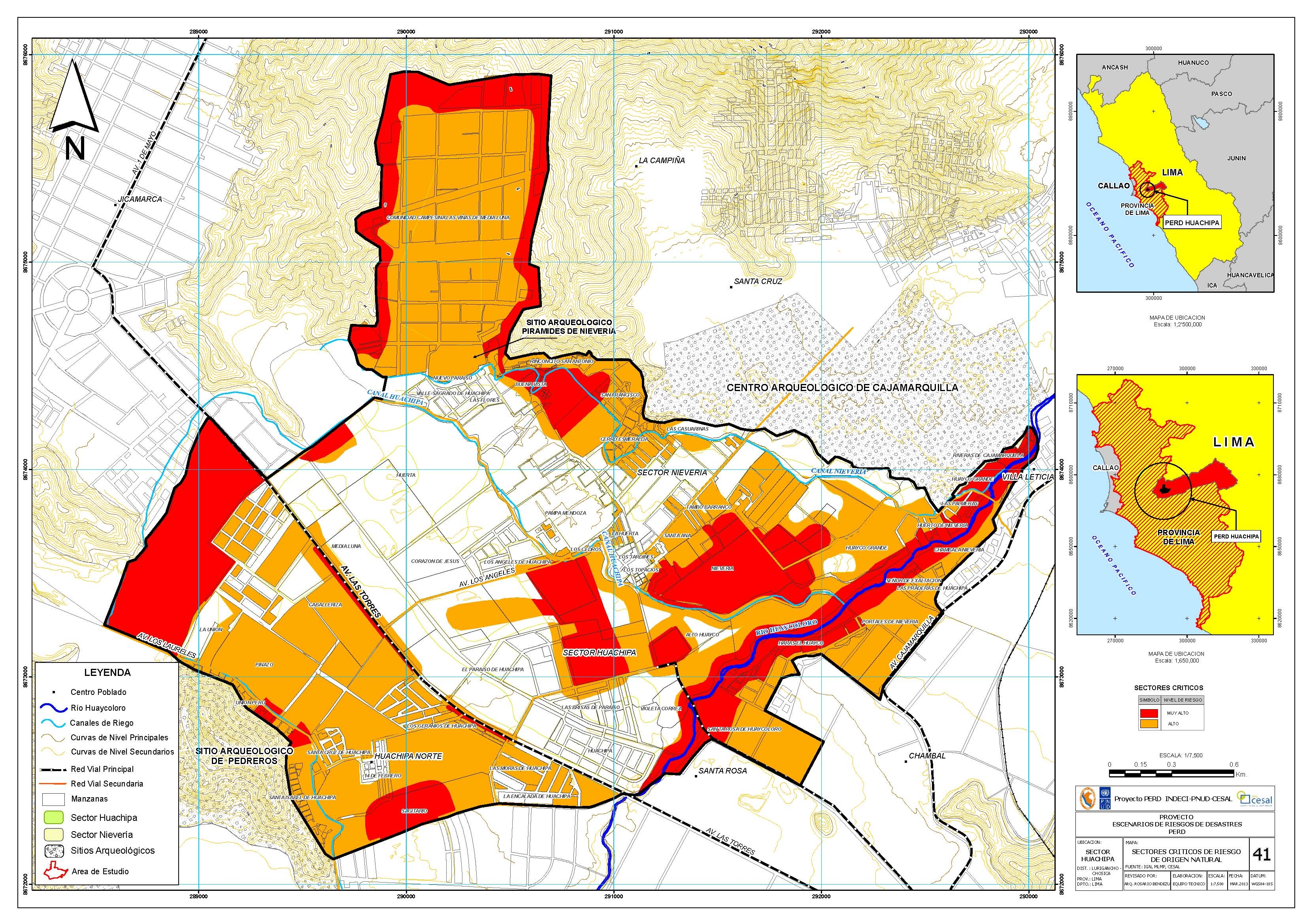Mapa sectores críticos en Huachipa, Lurigancho