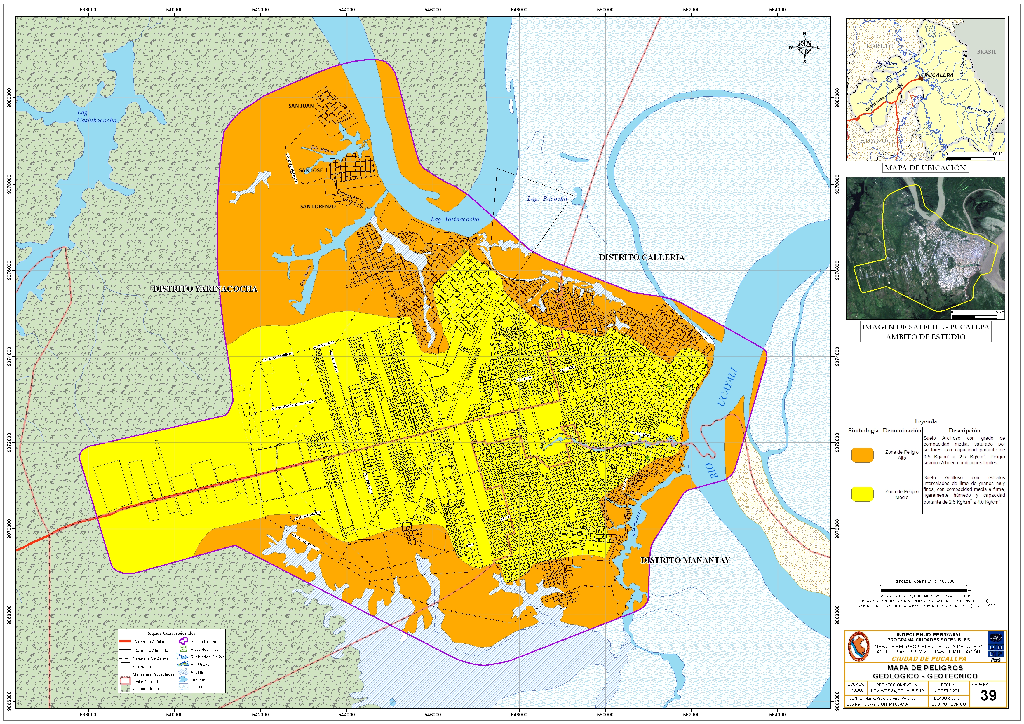 Mapa de peligro geológico - geotécnico de la ciudad de Pucallpa - Ucayali