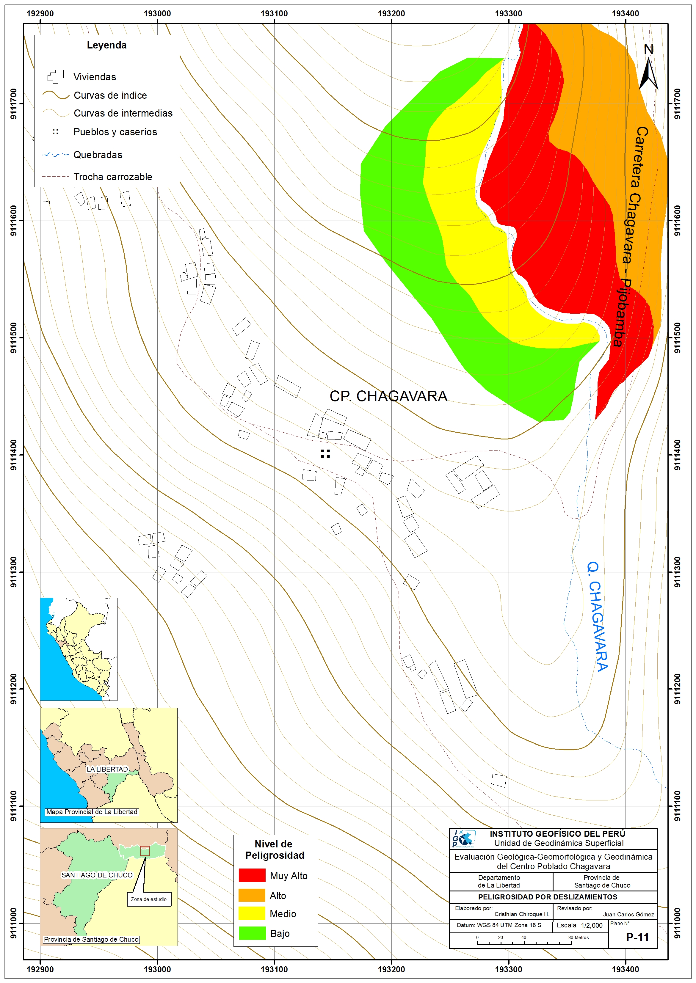 El Instituto Geofísico Nacional presenta los niveles de peligrosidad por deslizamientos elaborado en el marco de la evaluación geológica geomorfológica y geodinámica del centro poblado Chagavara.
