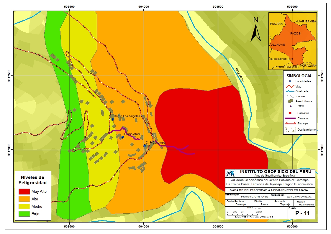 Mapa de peligrosidad a movimiento en masa centro poblado Carampa, Huancavelica