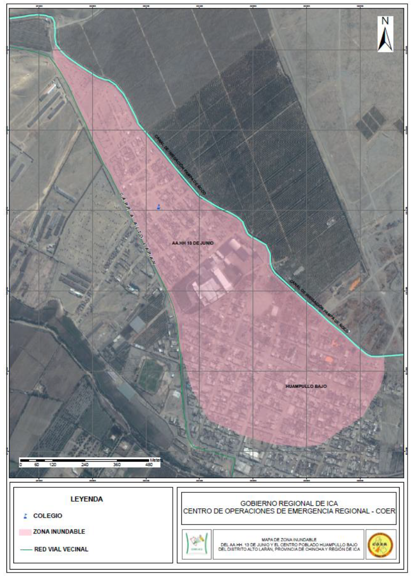 Mapa de zona inundable del AA.HH. 13 de Junio y el centro poblado Huampullo Bajo del distrito Alto Laran