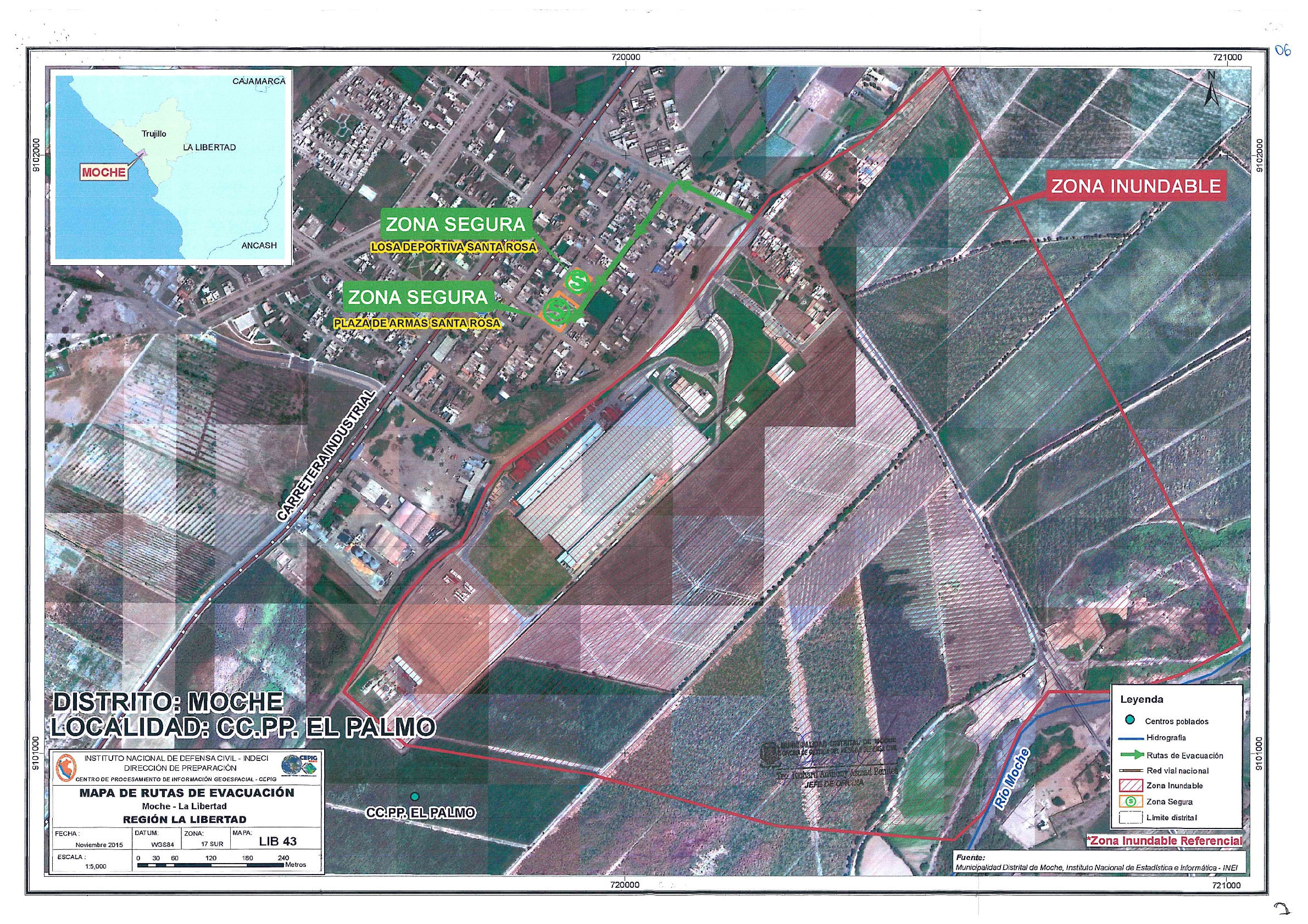 Mapa de rutas de evacuación, centro poblado El Palmo - Distrito Trujillo, La Libertad