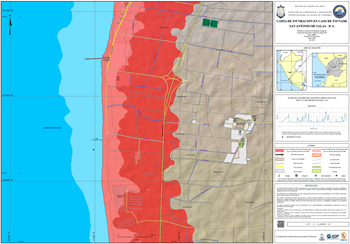 La carta presenta la zona inundable ante tsunami generado por un evento sísmico de 8.5Mw y 9.0 Mw en el distrito Tambo de Mora, provincia de Chincha, departamento de Ica.