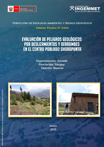 Informe Técnico N° A7619 Evaluación de peligros geológicos por deslizamientos y derrumbes en el centro poblado Shoropunta, distrito de Mancos, provincia de Yungay, departamento de Áncash