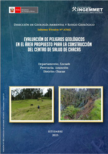 Informe Técnico N° A7663 Evaluación de peligros geológicos en el área propuesto para la construcción del centro de salud de Chacas, distrito de Chacas, provincia de Asunción, departamento de Áncash