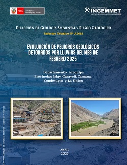 El informe presenta los resultados de la evaluación de peligros en los distritos de Cerro Colorado, Cayma, Alto Selva Alegre, Mariano Melgar y Paucarpata, de la provincia y departamento de Arequipa. La evaluación se realizó ante emergencias provocadas por lluvias que desencadenaron peligros geológicos, principalmente flujos de detritos (huaicos), identificándose15 sectores afectados, con daños en viviendas, vías urbanas y obras de drenaje. Finalmente el informe brinda recomendaciones generales para que las autoridades competentes y tomadores de decisiones pongan en práctica con la finalidad de minimizar los daños.
