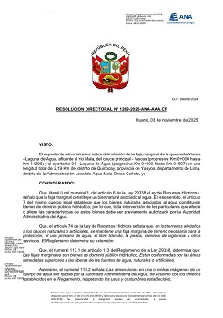 Resolución Directoral N° 1269-2025-ANA-AAA.CF: Delimitación de la faja marginal de la Quebrada Viscas-Laguna de agua, ubicada en el distrito de Quinocay, provincia de Yauyos y departamento de Lima