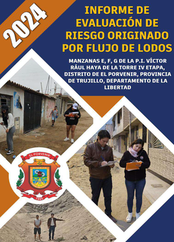 El objetivo del presente informe es determinar el nivel del riesgo originado por flujo de lodos en las manzanas E, F, G de la P.I. Víctor Raúl Haya de La Torre IV Etapa, ubicada en el distrito de El Porvenir, de la provincia de Trujillo, del departamento La Libertad; así como las medidas necesarias que deberán ejecutarse para reducir el riesgo a futuro.