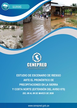 Escenario de riesgo ante el pronóstico de precipitaciones en la sierra y costa norte (Extensión del aviso 075) del 08 al 09 de marzo de 2026