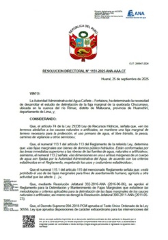 Resolución Directoral N° 1151-2025-ANA-AAA.CF: Delimitación de faja marginal de la quebrada Chucumayo, distrito de Matucana, provincia de Huarochirí, región Lima