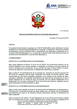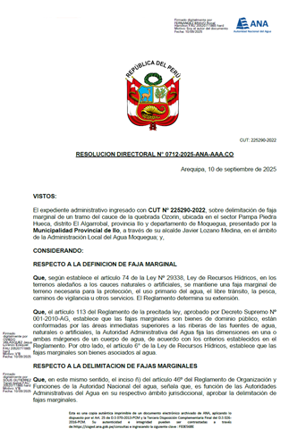 Resolución Directoral N° 0712-2025-ANA-AAA.CO: Delimitación de faja marginal de un tramo del cauce de la quebrada Ozorin, ubicada en el sector Pampa Piedra Hueca, distrito El Algarrobal, provincia Ilo y departamento de Moquegua