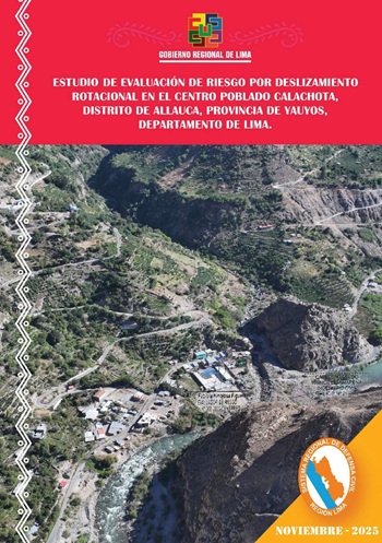 El presente estudio tiene como objetivo determinar los niveles de riesgo por deslizamiento rotacional en el centro poblado Calachota, distrito de Allauca, provincia de Yauyos, departamento de Lima, con el fin de establecer medidas estructurales y no estructurales apropiadas según el nivel del riesgo.