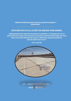 El presente estudio tiene como objetivo determinar los niveles de riesgo originado por peligro sísmico en el área de influencia del proyecto “Mejoramiento del servicio de práctica deportiva y/o recreativa en la asociación Sace Gral Juan Velazco Alvarado 6ta BB de Centro Poblado Villa Militar el Eden, distrito de Ite de la provincia Jorge Basadre del departamento de Tacna".
