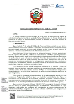 Resolución Directoral N° 1141-2025-ANA-AAA.CF: Delimitación de faja marginal de la quebrada Paihua, tributario del río Rímac, distrito de Matucana, provincia de Huarochirí, región Lima