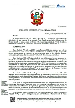 Resolución Directoral N° 1160-2025-ANA-AAA.CF: Delimitación de faja marginal de la quebrada Agua Salada y sus aportantes 1 y 2, tributario del río Rímac, distrito de Santa Cruz de Cocachacra, provincia de Huarochirí, región Lima