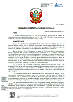 Resolución Directoral N° 1452-2025-ANA-AAA.CF: Delimitación de faja marginal del río Rímac km 116+712 a 122+780 (6,09 Km), ubicado en el distrito de Chicla, provincia de Huarochirí y región Lima