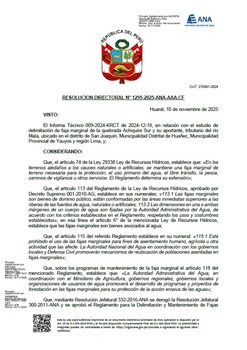 Resolución Directoral N° 1295-2025-ANA-AAA.CF: Delimitación de la faja marginal de la Quebrada Achiquire Sur, ubicada en los distritos San Joaquín y Huañec, provincia de Yauyos, departamento de Lima