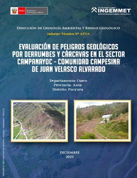El presente informe tiene como objetivos identificar, tipificar y caracterizar los peligros geológicos por movimientos en masa que presenta el sector Campanayoc de la comunidad campesina de Juan Velasco Alvarado; determinar los factores condicionantes y detonantes que influyen en la ocurrencia de peligros geológicos por movimientos en masa; y, emitir recomendaciones viables y ejecutables a fin de reducir, prevenir y/o mitigar los daños que pueden causar los peligros geológicos identificados.