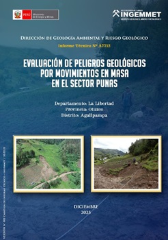 El presente informe tiene como objetivos evaluar y caracterizar los peligros geológicos por movimientos en masa en el sector Punas, distrito Agallpampa, provincia Otuzco y departamento La Libertad; determinar los factores condicionantes y desencadenantes que influyen en la ocurrencia de los peligros geológicos; y, proponer medidas de prevención, reducción ante peligros geológicos evaluados.