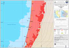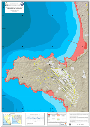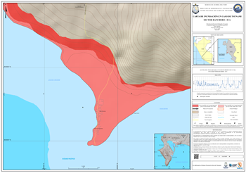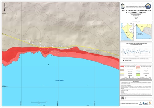 La carta presenta la zona inundable ante tsunami generado por un evento sísmico de 8.5Mw y 9.0 Mw en el distrito de Paracas, provincia Pisco, departamento Ica.